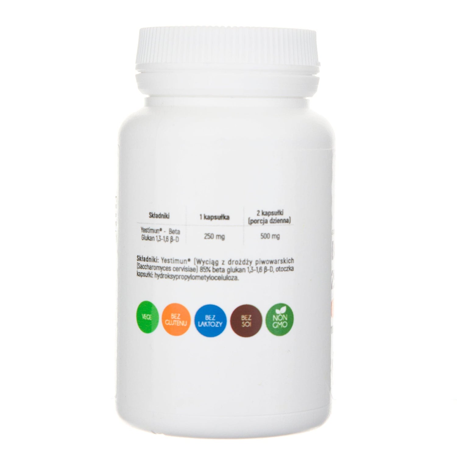 Yestimun® (Brewer's yeast extract (Saccharomyces cervisiae) 85% beta 1,3-1,6 β-D glucan, capsule shell: (binder: hydroxypropyl methylcellulose).
