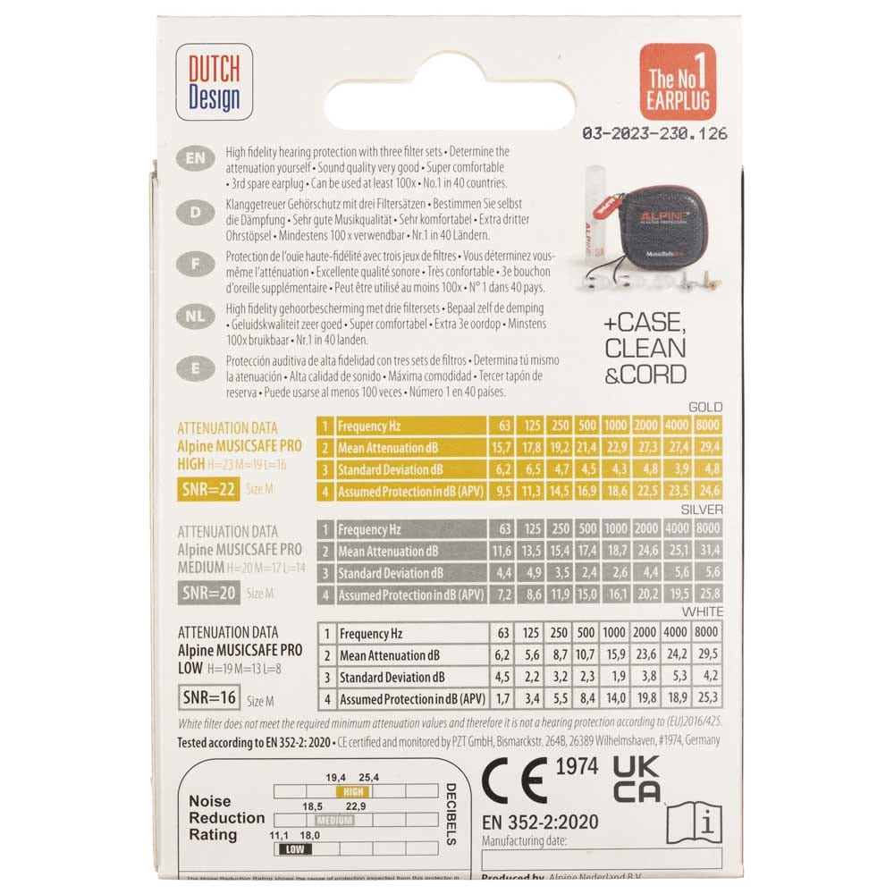 As a musician, DJ or sound engineer, you often spend time in environments with loud music. The risk of permanent hearing loss is huge. Hearing loss has a direct impact on your ability to do your job or pursue your passion. Good hearing protection is therefore vital during rehearsals, performances, and concerts. Alpine designed MusicSafe earplugs to do just that. This MusicSafe Pro variant is sold with three sets of exchangeable filters. You can choose between the white filters with 16 dB noise reduction (low), silver filters with 19 dB noise reduction (mid), and gold filters with 22 dB noise reduction (high). The AlpineAcousticFilters™ guarantee optimum protection against damaging noise levels whilst retaining high music quality, allowing you to listen to and make music with your whole heart. With Alpine MusicSafe Pro, you can safely enjoy a rehearsal, performance or party and select the right noise reduction value for every situation.