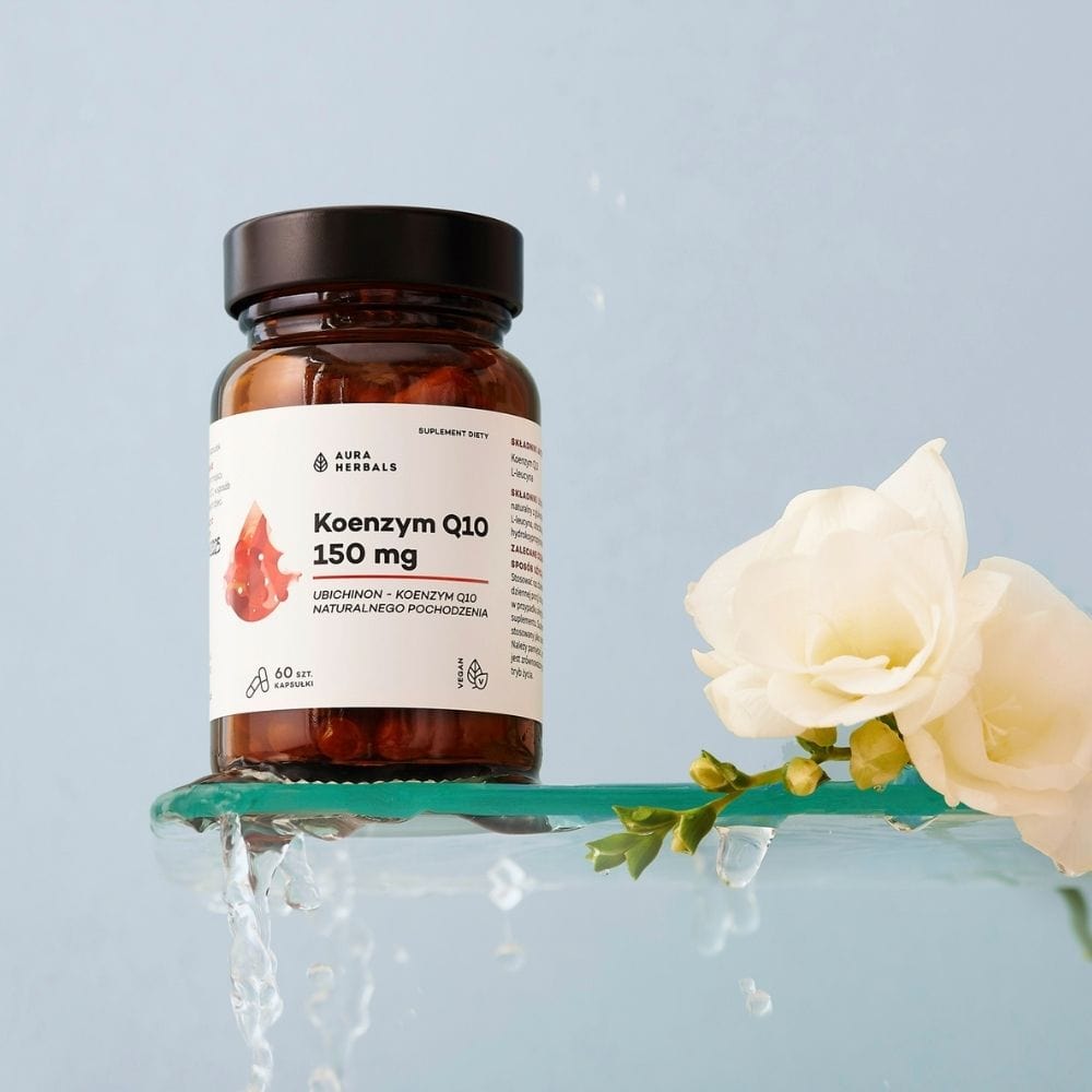 Aura Herbals Coenzyme Q10 is a dietary supplement in vegetable capsules. It contains natural coenzyme Q10 (ubiquinone) from corn glucose. Each capsule provides 150 mg of coenzyme Q10.
