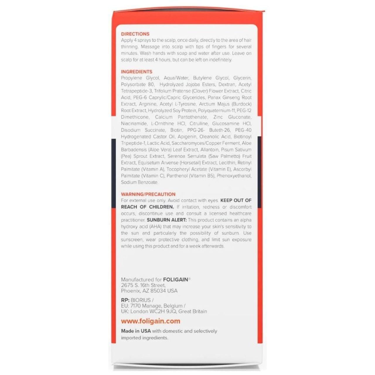 FOLIGAIN Triple Action Complete Formula For Thinning Hair For Men With 10% Trioxidil is a breakthrough treatment with the maximum strength of 10% Trioxidil, which effectively supports visible improvement in hair density. The clinically proven formula increases hair volume by 180% in 4 months, reducing hair loss by up to 76%.