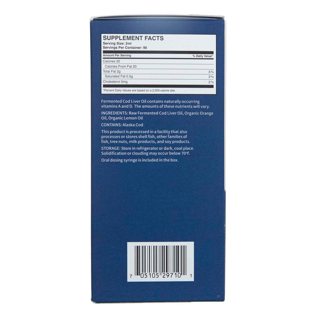 Raw Fermented Cod Liver Oil, Organic Orange Oil, Organic Lemon Oil.