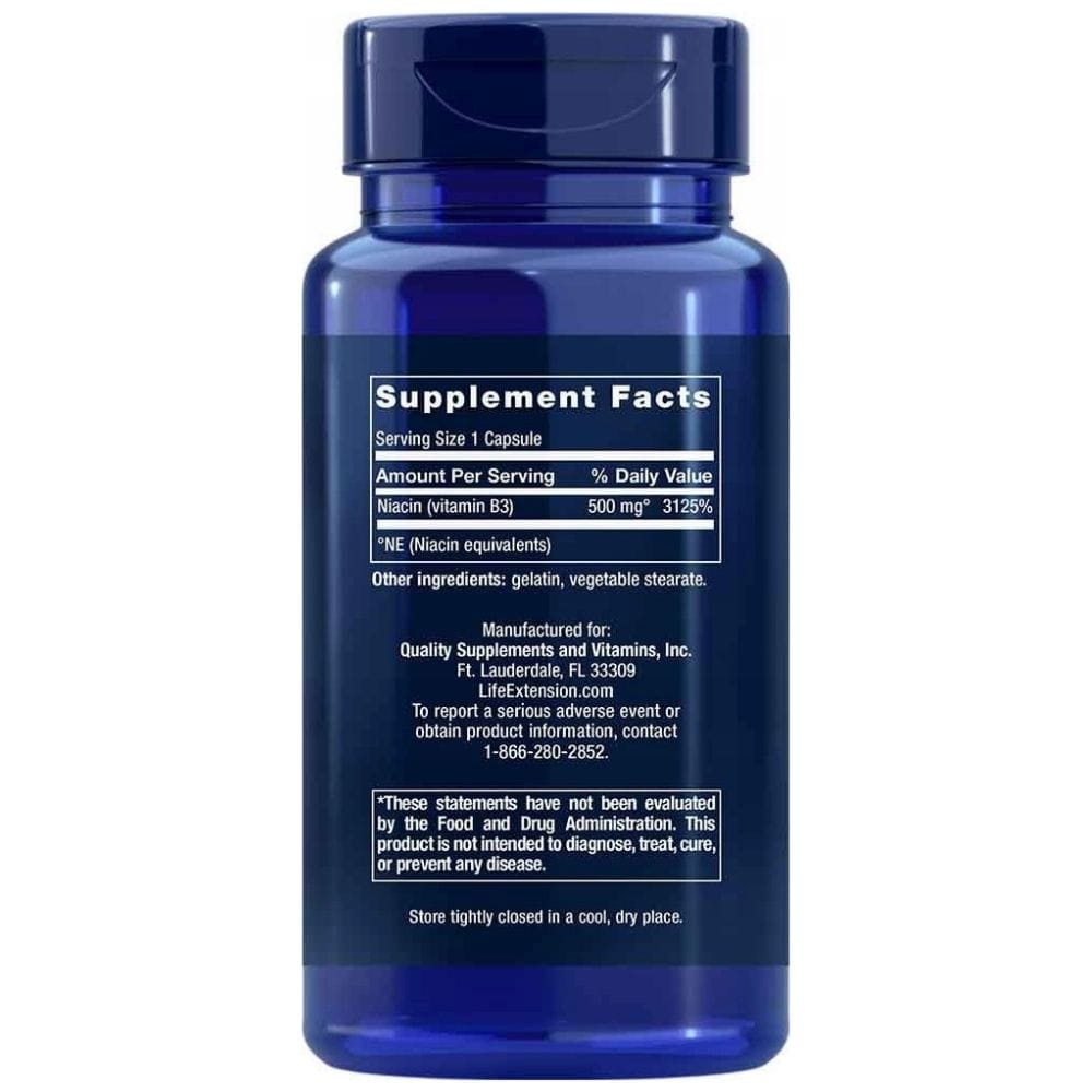 Life Extension Vitamin B3 Niacin 500 mg - 100 Capsules