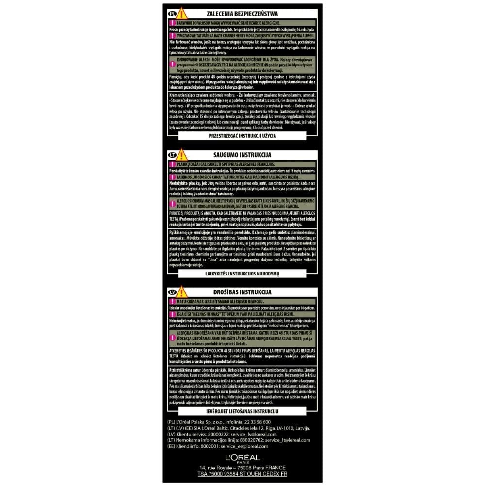 Follow the instructions for use included in the package. Before use, be sure to perform an allergy test 48 hours before application, even if you have previously used color products.