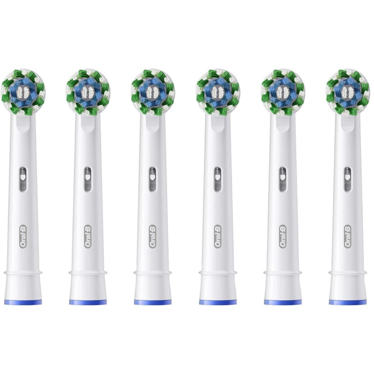 Original Oral-B PRO Cross Action brush heads with bristles angled at 16° for thorough cleaning of each tooth. The 6-piece set provides a six-month supply for regular replacement. Compatible with most Oral-B electric toothbrushes.