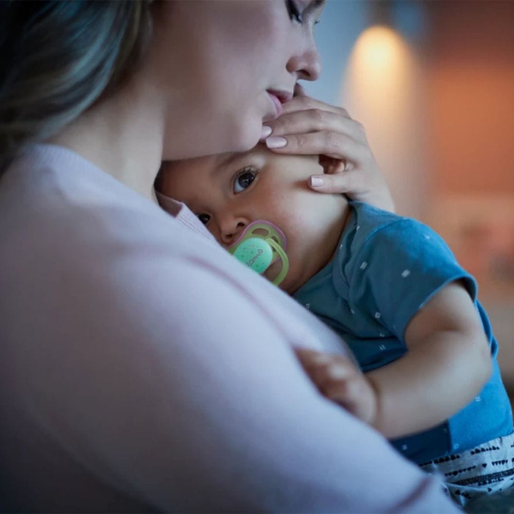 • Night-time feeds and wake-ups – the light-up button makes it easy to find the pacifier.