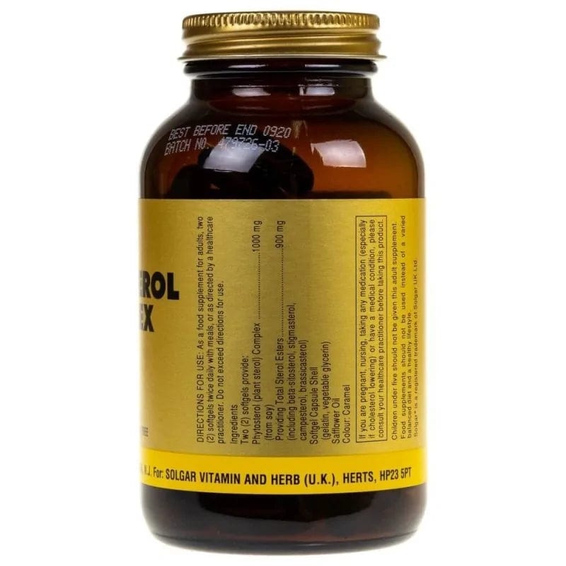 Phytosterol Complex capsule dietary supplement by Solgar. Contains a phytosterol complex with sterol esters.