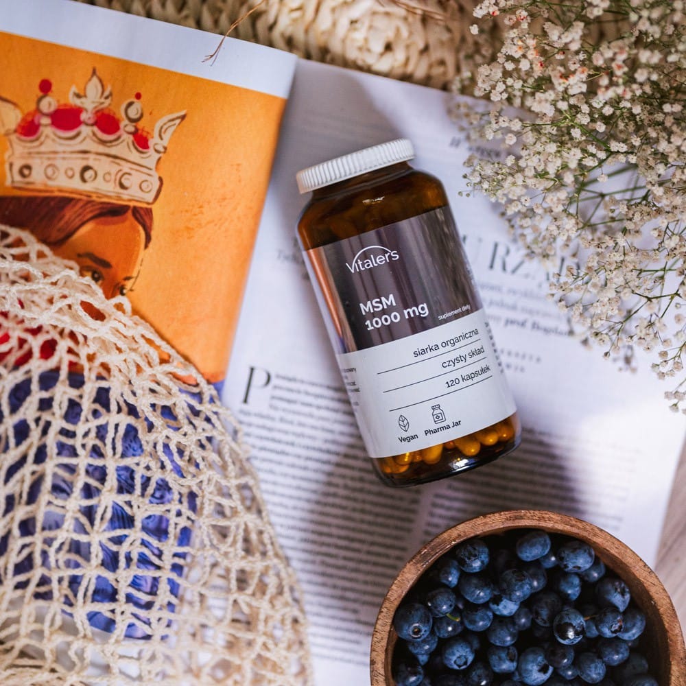 Vitaler's MSM (Organic Sulphur) 1000 mg is a dietary supplement in capsule form containing 1000 mg of methylsulfonylmethane (MSM) in each capsule. MSM is an organic sulphur compound found naturally in certain fruits and vegetables, among other foods. HPMC capsules suitable for vegetarians and vegans. 120 capsules per pack. Does not contain: preservatives, flavourings, colourings, added sugar.