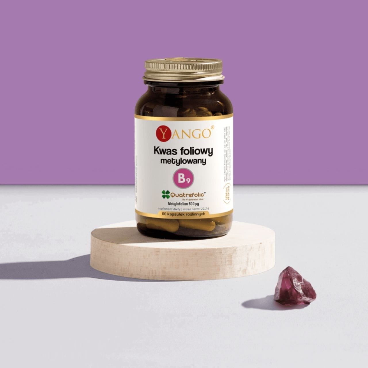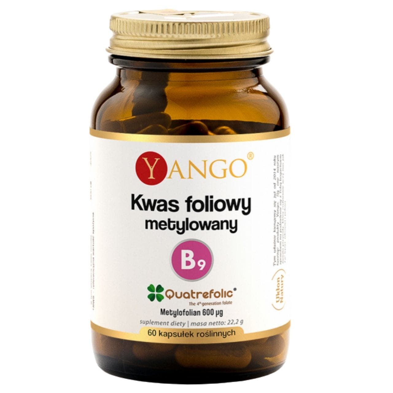 Yango Methylated Folic Acid is a dietary supplement in vegan cellulose capsules containing the active form of folate — 5-MTHF Quatrefolic® (600 µg — 300% RDA) per capsule. Folate contributes to normal blood formation, amino acid synthesis, the functioning of the immune system and the reduction of fatigue and tiredness. Folate plays a role in the process of cell division and normal homocysteine metabolism. A vegan product with a minimalist formulation free from unnecessary additives.